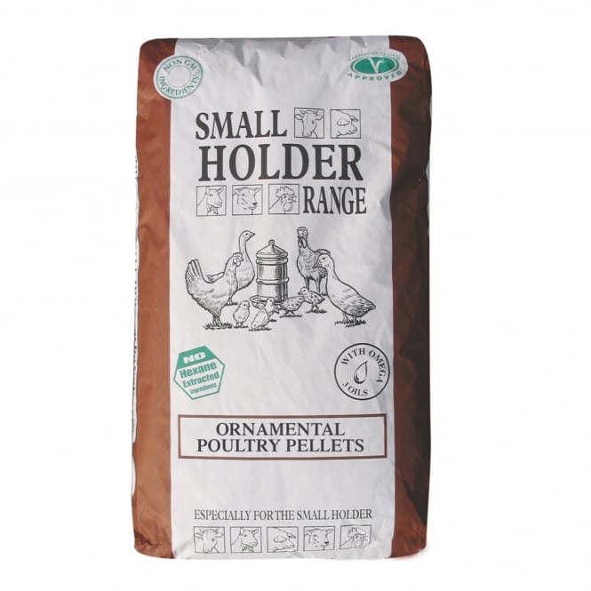 Made from quality Non-GM ingredients, soya free and with added Omega 3, Allen & Page Ornamental Poultry Pellets contain no artificial colours and is Vegan Approved by the Vegetarian Society.