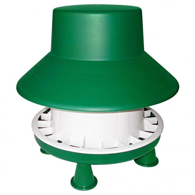With its strong lightweight design and 6Kg capacity, this poultry feeder is ideal for domestic and smallholder use. It comes complete with an outdoor rain hat and a set of four push fit legs to keep feed from the floor.