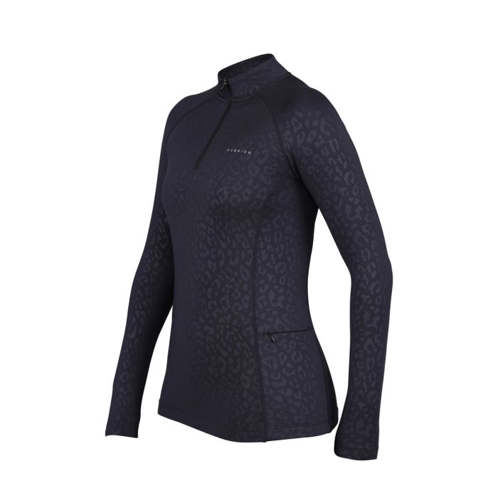 Not just practical, our base layer features a subtle embossed leopard print, adding a touch of style to your equestrian wardrobe. The soft brushed inner fabric ensures that you feel cozy and stylish during your rides. With a zip neck, you have the flexibility to adjust ventilation based on your needs. The zip chin guard provides additional comfort and protection whilst a side zip pocket is perfect for securely storing your essentials during your rides. Experience unparalleled comfort with the carefully designed comfort seams, ensuring you focus solely on your performance without any distractions.
